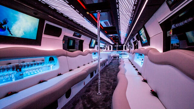 Step straight into your private party bus — luxury vibes and full fiesta from the start.✔ Open Bar